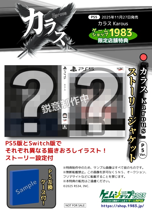 PS5用新品ソフト JAN 45734872610362025/11/27発売 2025/07/17登録 2025/07/24更新 2025/08/07更新 2025/09/07更新 2025/11/20更新 2025/11/26入荷 2025/12/29入荷しました。 →公式ページ 1983限定特典 ・ RS34さん描きおろしストーリージャケット+互換ソフトケース(機種毎に違う描き下ろしイラストとなります)