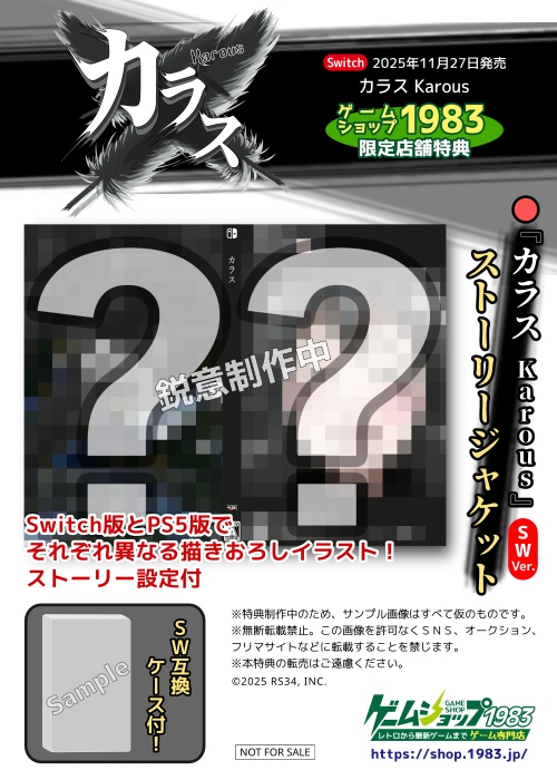 ニンテンドースイッチ用/Nintendo Switch用新品ソフト JAN 45734872610292025/11/27発売 2025/07/17登録 2025/07/24更新 2025/08/07更新 2025/09/07更新 2025/11/20更新 2025/11/26入荷 2025/12/16入荷 2026/01/16入荷しました。 →公式ページ 【同梱物】 ・ゲームソフト本編パッケージ ・アレンジサウンドトラック ・設定資料集(フルカラー64P) ・豪華化粧箱 1983限定特典 ・ RS34さん描きおろしストーリージャケット+互換ソフトケース(機種毎に違う描き下ろしイラストとなります)